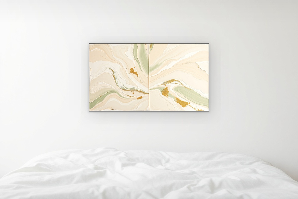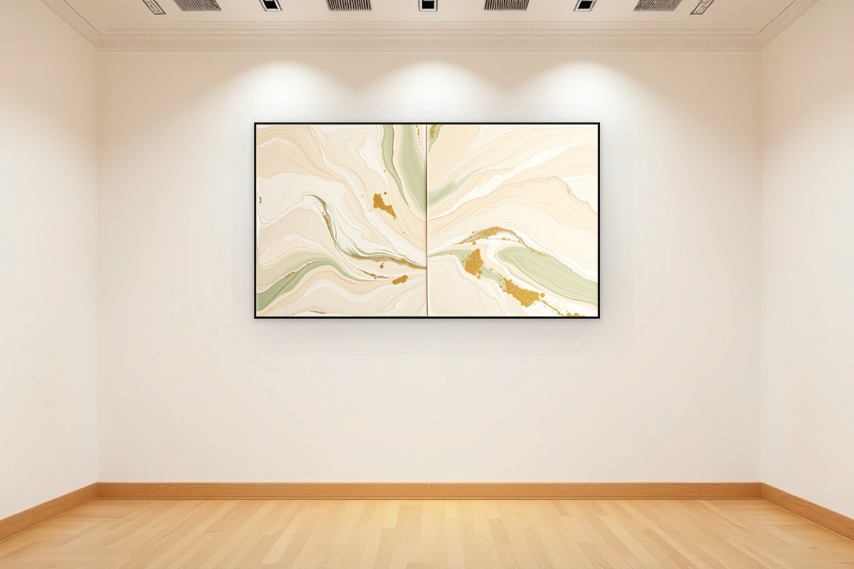 Elevate your living space with this exquisite set of two neutral abstract art prints, designed to bring sophisticated tranquility to any room. The diptych features fluid brushstrokes in a harmonious palette of warm beige, soft cream, and calming sage green, creating a serene visual dialogue between the two pieces. Each print showcases heavy impasto textures achieved through expert palette knife techniques, adding dimensional depth and tactile interest that catches the light beautifully. The organic movement and subtle blending of colors create a modern aesthetic that complements both contemporary and transitional interiors. Perfect as a focal point above a sofa, bed, or in an entryway, these art prints offer versatile wall decor that brings artistic elegance to your home. Printed on premium archival paper with fade-resistant inks, this set promises to be a lasting addition to your interior design vision.