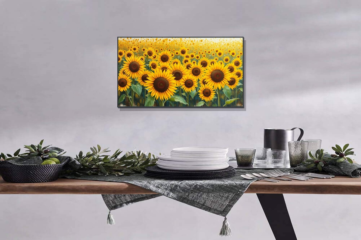 Golden Oasis captures a serene desert landscape bathed in warm, luminous hues, evoking tranquility and timeless beauty. Perfect for adding elegance to any space.