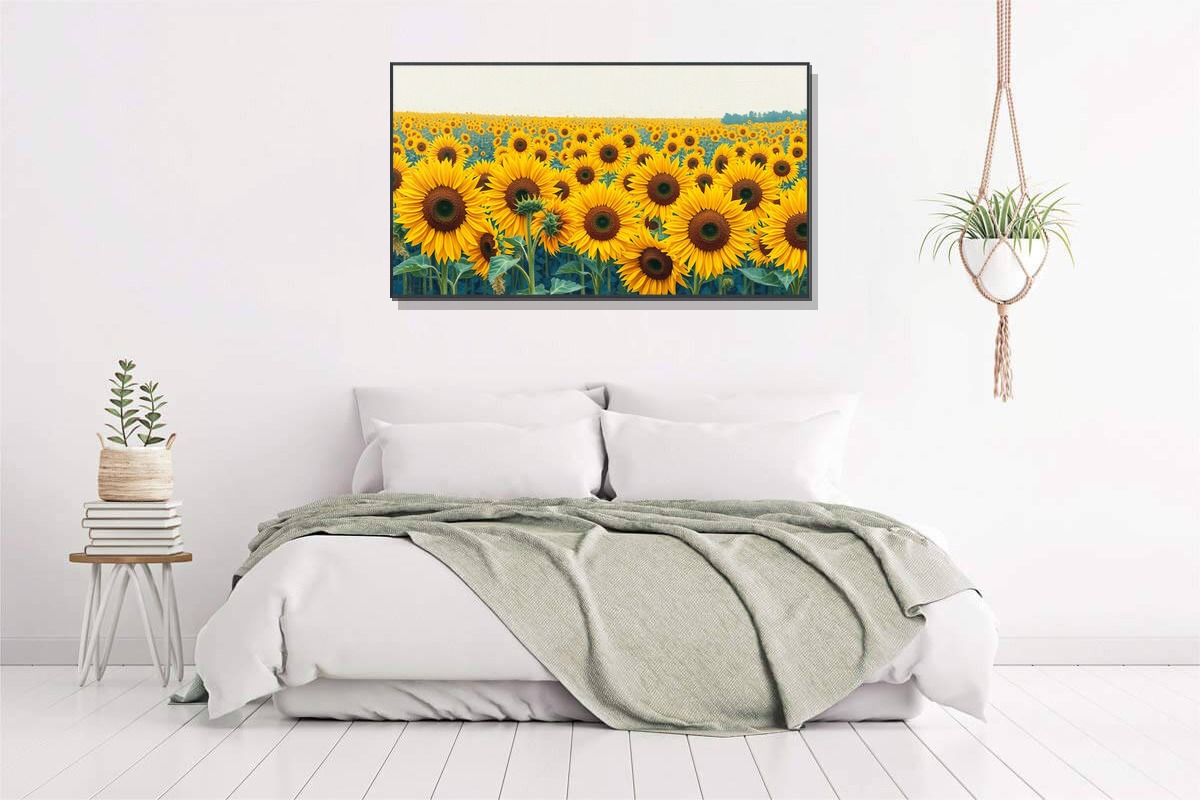 Introducing 'Silent Oasis,' an exquisite Abstract Expressionist painting that reimagines blooming sunflower fields through the mesmerizing lens of AJAZIKO Blue. This masterpiece captures the serene beauty of nature with bold, textured brushstrokes and a dynamic interplay of cobalt, cerulean, and golden accents, creating a visual symphony of depth and emotion. Each stroke is meticulously applied on premium gallery-grade canvas using archival inks, ensuring vibrant, fade-resistant colors that maintain their brilliance for years. Designed to elevate any interior, this framed artwork arrives ready to hang, making it effortless to transform your living room, office, or bedroom into a sophisticated sanctuary. More than just decor, 'Silent Oasis' offers a daily escape—a silent retreat that inspires calm and creativity, embodying the essence of high-end gallery craftsmanship. Invest in a piece that not only decorates your walls but also enriches your soul, blending artistic innovation with timeless elegance.