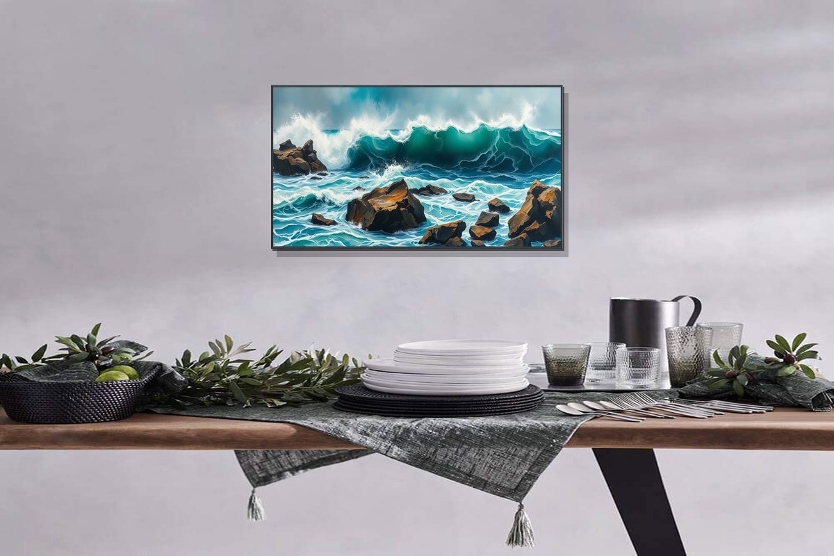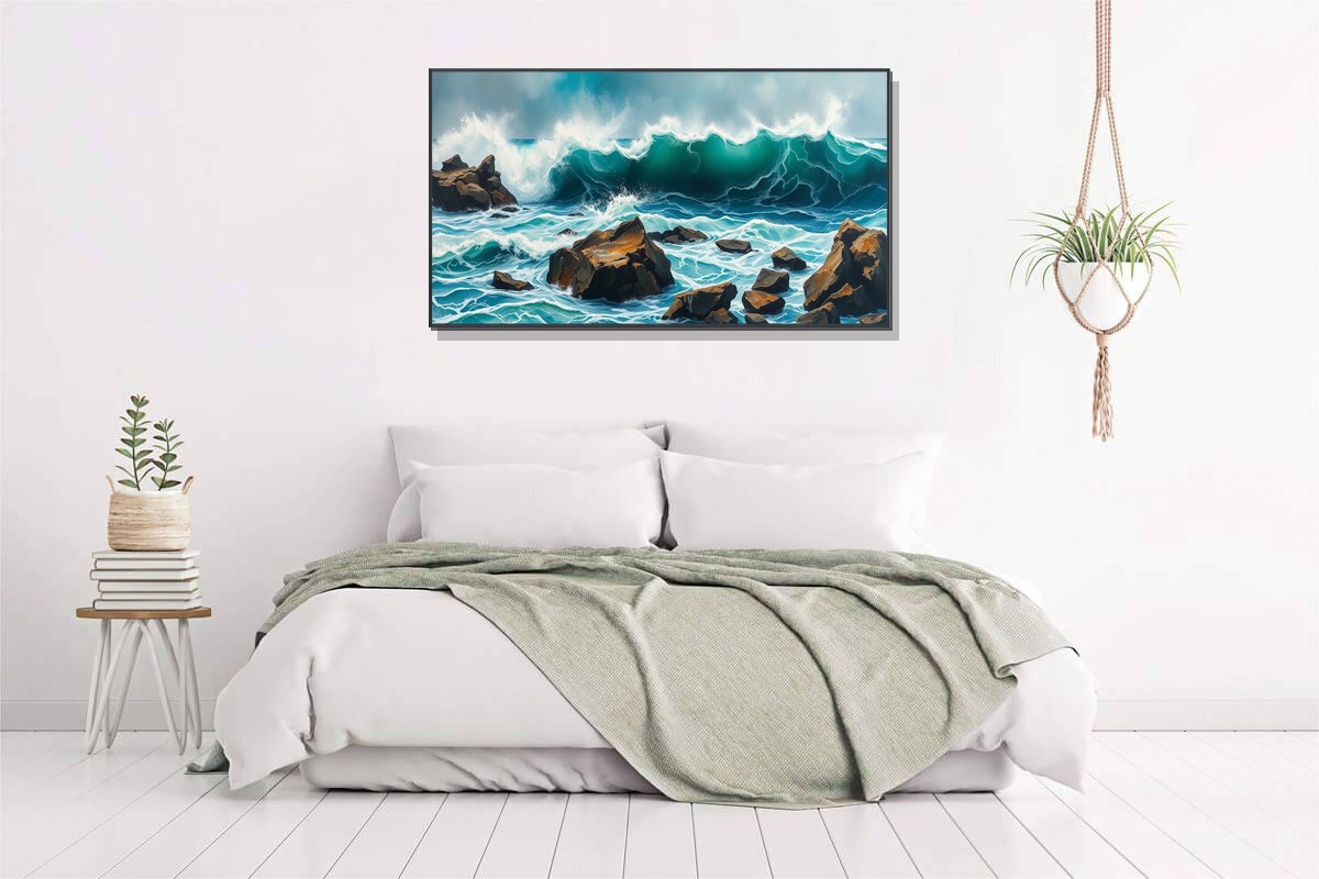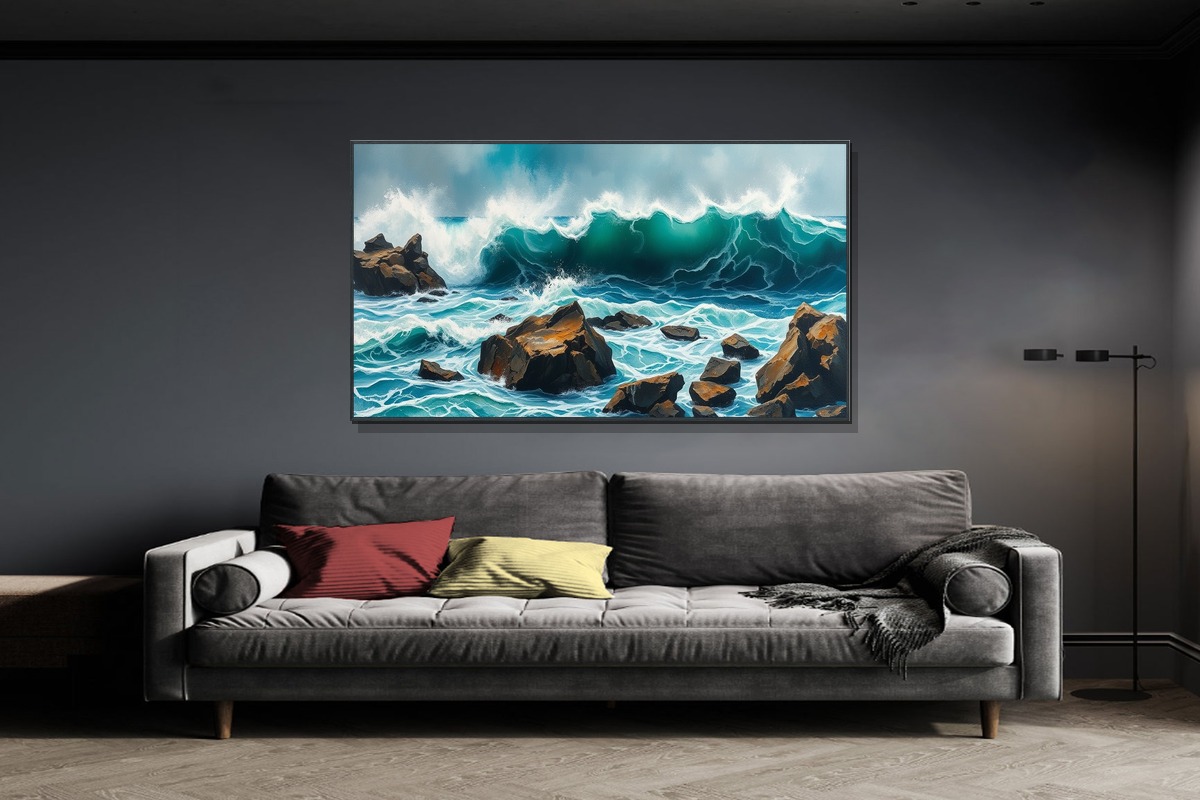 Introducing 'Velvet Mirage' - a breathtaking masterpiece that captures the raw power and beauty of tempestuous ocean waves crashing against rugged rocks. This exquisite Abstract Expressionism painting draws inspiration from nature's most dramatic moments, rendered in sophisticated green-gray pastel tones that shift and shimmer like light on water. Each brushstroke tells a story of movement and emotion, creating a textured surface that invites touch and contemplation. Crafted on premium gallery-wrapped canvas with museum-quality materials, this artwork maintains its vibrant colors and structural integrity for generations. The 60x90 cm (24x36 inches) size makes a bold statement while remaining versatile for various spaces. Unlike mass-produced decor, 'Velvet Mirage' represents true artistic vision - a limited edition piece that transforms ordinary walls into extraordinary galleries. Experience the emotional depth and visual impact that only genuine art can provide, elevating your home or office into a space of inspiration and sophistication. This isn't just wall decor; it's an investment in beauty, emotion, and personal expression that will captivate viewers and spark conversations for years to come.