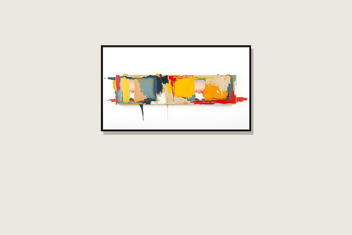 • Long narrow vertical format creates dramatic visual impact in modern interior spaces