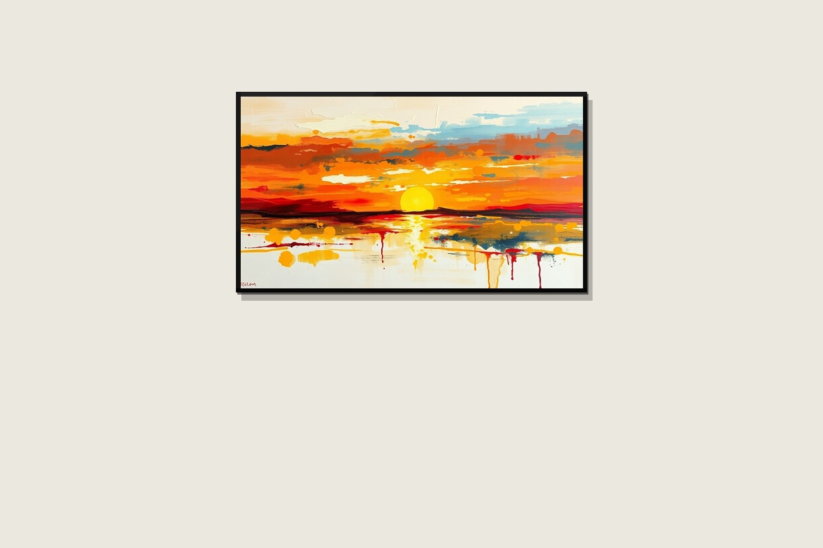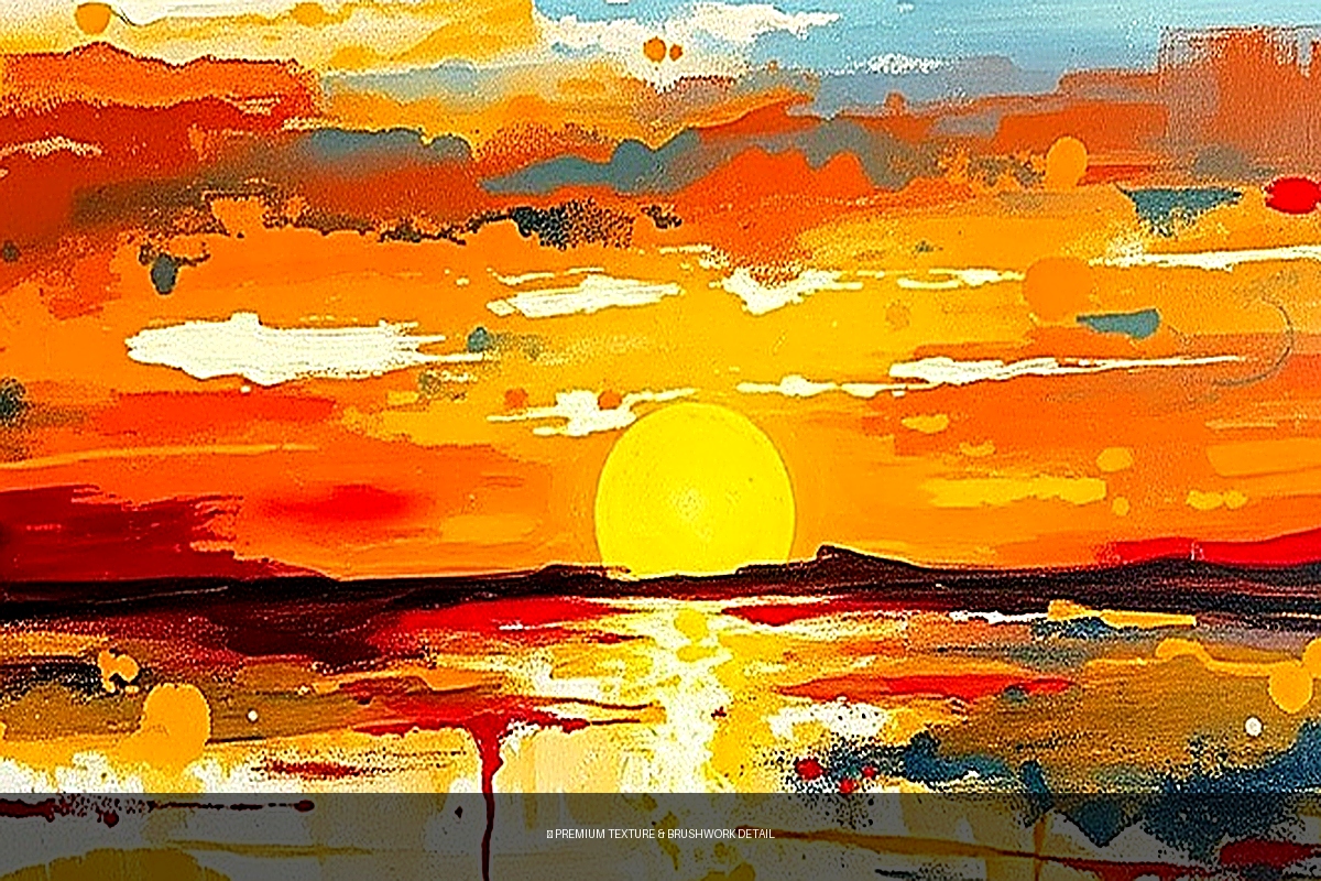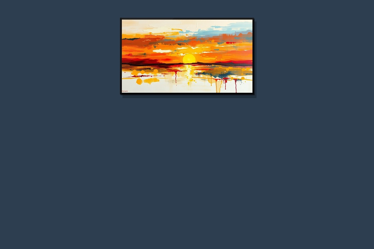 Crimson Mirage 694 is a breathtaking abstract expressionist masterpiece that reimagines the classic golden sunset horizon through a bold crimson lens. This original oil painting captures the fleeting magic of twilight with passionate brushstrokes and rich texture, where fiery reds blend with molten gold accents across a 60x90 cm canvas. Each viewing reveals new emotional layers and dynamic movement, as the artist translates sunset's transient beauty into a permanent visual symphony. The painting's depth and intensity evolve with changing light, creating an ever-transforming centerpiece for modern interiors. More than mere decoration, this artwork invites contemplation and emotional connection, offering collectors a unique interpretation of nature's most spectacular daily performance through the visionary language of abstract expressionism.