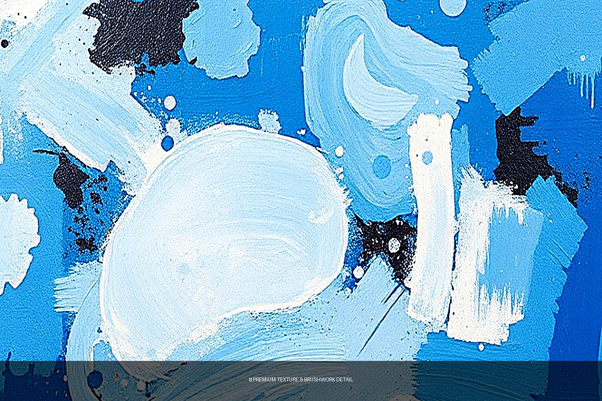 Introducing 'Midnight Oasis 131' – a captivating abstract expressionist masterpiece that transforms any space into a serene coastal sanctuary. This large 60x90 cm canvas painting draws profound inspiration from framed blue abstract wall art, blending deep midnight blues with subtle oceanic hues in a mesmerizing dance of color and texture. Each brushstroke is intentionally applied by skilled artists, creating dynamic movement reminiscent of gentle ocean waves meeting moonlit shores. The premium gallery-wrapped canvas features a sturdy wooden frame and protective satin varnish that enhances color vibrancy while ensuring durability. Perfect for modern living rooms seeking sophisticated focal points, minimalist bedrooms craving tranquil ambiance, or professional offices desiring inspirational decor. Unlike mass-produced prints, this original artwork captures the raw emotion and spontaneity characteristic of abstract expressionism, inviting viewers to discover new details with every glance. Experience the perfect harmony of coastal elegance and contemporary artistry that elevates your wall decor beyond ordinary seascape paintings.