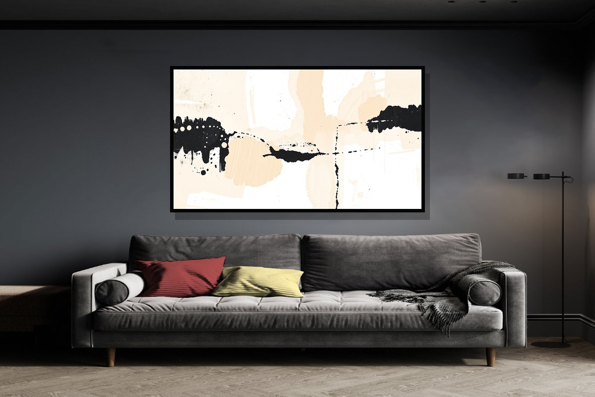 Premium Neutral Abstract Canvas Art - Modern Beige & Black Wall Decor