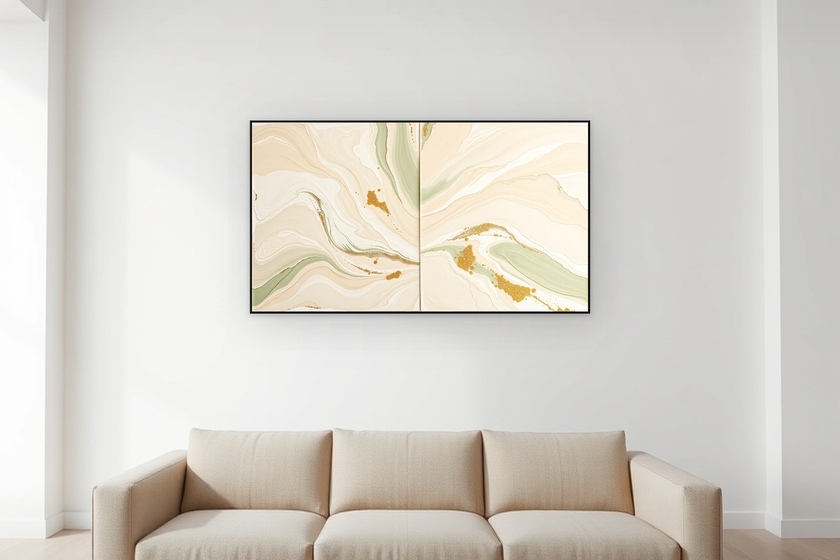 Elevate your living space with this exquisite set of two neutral abstract art prints, designed to bring sophisticated tranquility to any room. The diptych features fluid brushstrokes in a harmonious palette of warm beige, soft cream, and calming sage green, creating a serene visual dialogue between the two pieces. Each print showcases heavy impasto textures achieved through expert palette knife techniques, adding dimensional depth and tactile interest that catches the light beautifully. The organic movement and subtle blending of colors create a modern aesthetic that complements both contemporary and transitional interiors. Perfect as a focal point above a sofa, bed, or in an entryway, these art prints offer versatile wall decor that brings artistic elegance to your home. Printed on premium archival paper with fade-resistant inks, this set promises to be a lasting addition to your interior design vision.